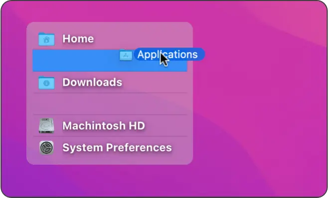 Add folders, drives, shared network volumes, and System Preferences (Settings) to navigate their contents quickly via mouse and/or keyboard